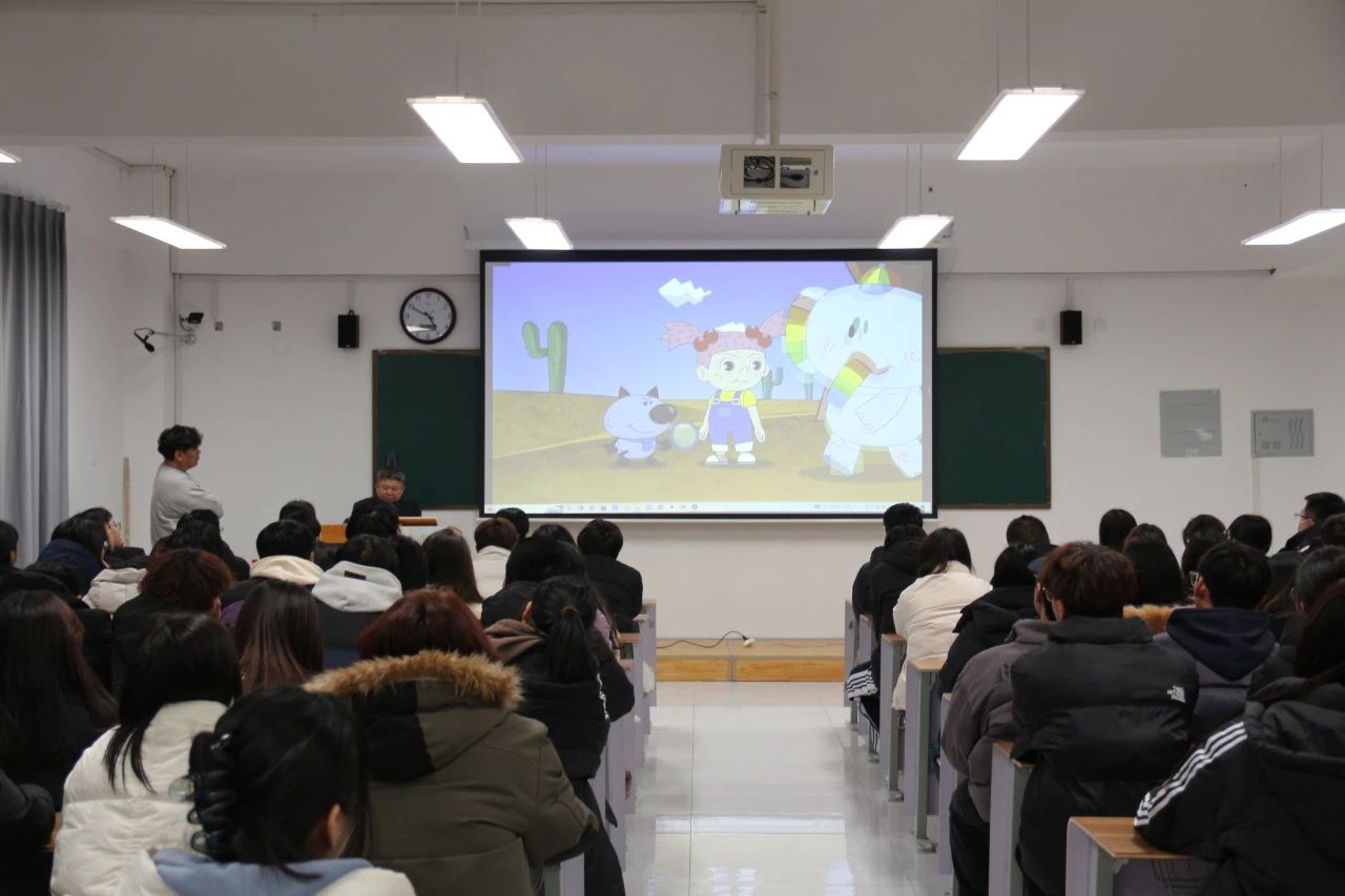 讲座中,金善镕结合自己的真实的经历,讲述自己从爱好画画发展成投身到动画行业里面,通过不同的动画样片,展示了技术的更迭,也展示了行业的发展方向,生动地讲解了动画行业的发展以及相关职业的前景。通过解析经典动画作品背后的创作故事与技术解析,向同学们揭示作品从创意构思、剧本编写、角色设计、画面绘制到后期制作等各个环节的创作思路和技术运用。还为同学们分享在韩国动画行业从事不同职业岗位所需的专业技能、素质要求以及职业发展路径。
