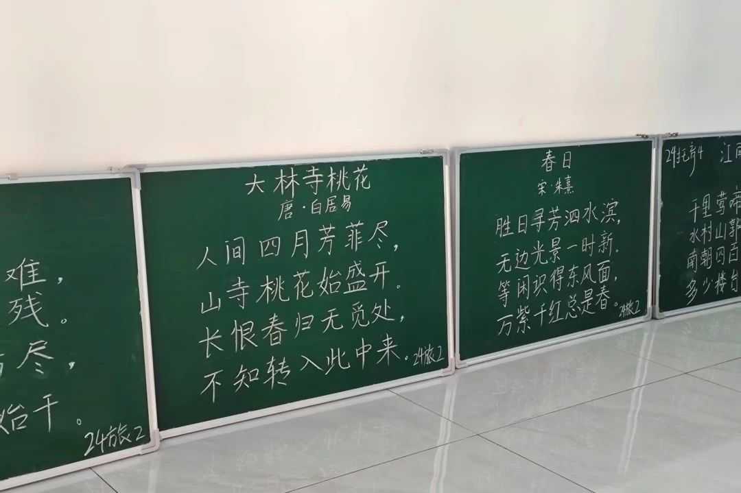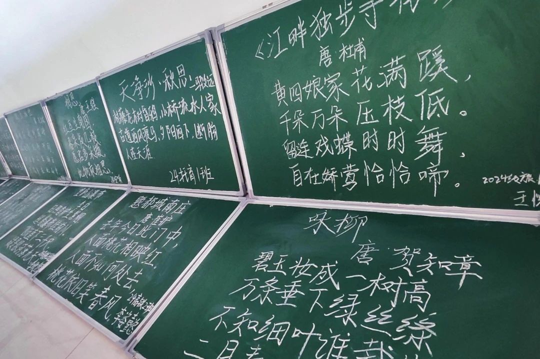 在教师的示范引领下,各专业班级积极响应,踊跃参与。学生们怀揣着对传统文化的热爱,以饱满的热情投入到书写创作中。各班级作品风格各异,这些作品不仅体现了学生们的书写水平,更彰显了他们积极向上的精神风貌和对传统文化的热爱与传承。经过评委评选,一批优秀的板书作品脱颖而出,并在学院内进行展示和共赏。