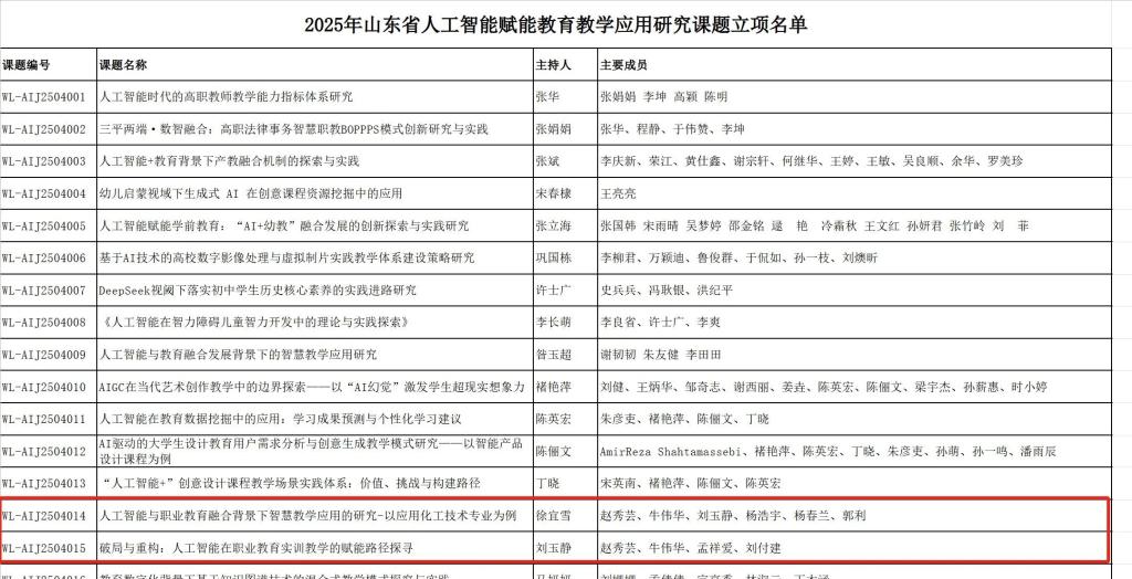 教师科研引领创新:获批山东省未来科学研究院“人工智能赋能教育教学应用研究”课题2项,聚焦智能技术与医学健康教育的深度融合。这不仅为学院的数字化教学改革注入全新动能,也将为医学教育领域在智能化时代的发展提供实践经验与理论支撑。