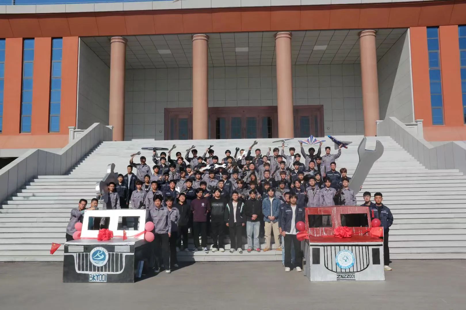 beat365在线唯一官网4月春季田径运动会开幕式的舞台上,一场别开生面的“创意风暴”震撼来袭。智能制造学院师生凭借奇思妙想与精湛技艺,匠心打造的纸壳车、巨型纸壳扳手等特色道具惊艳登场。此次创意道具的设计与制作,在副院长杨新新的统筹规划下,王华卿、李森、李昊翔三位辅导员全程悉心指导,栾硕、刘嘉泉、王方康、刘栋功、吴昊阳、韦书博等同学组成的创作团队历时10天,将普通的纸管材料精心雕琢,成功转化为兼具艺术性与实用性的创意之作。
