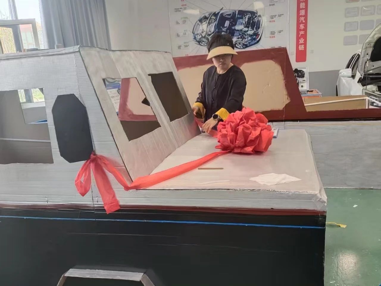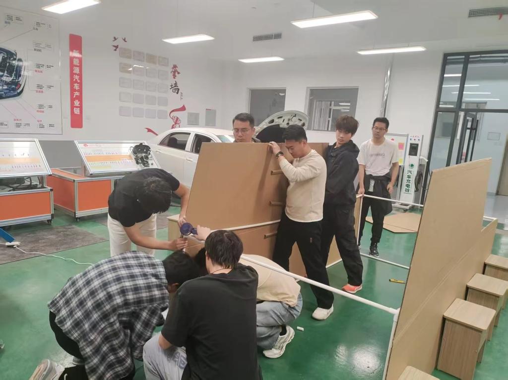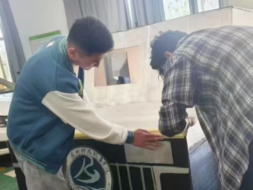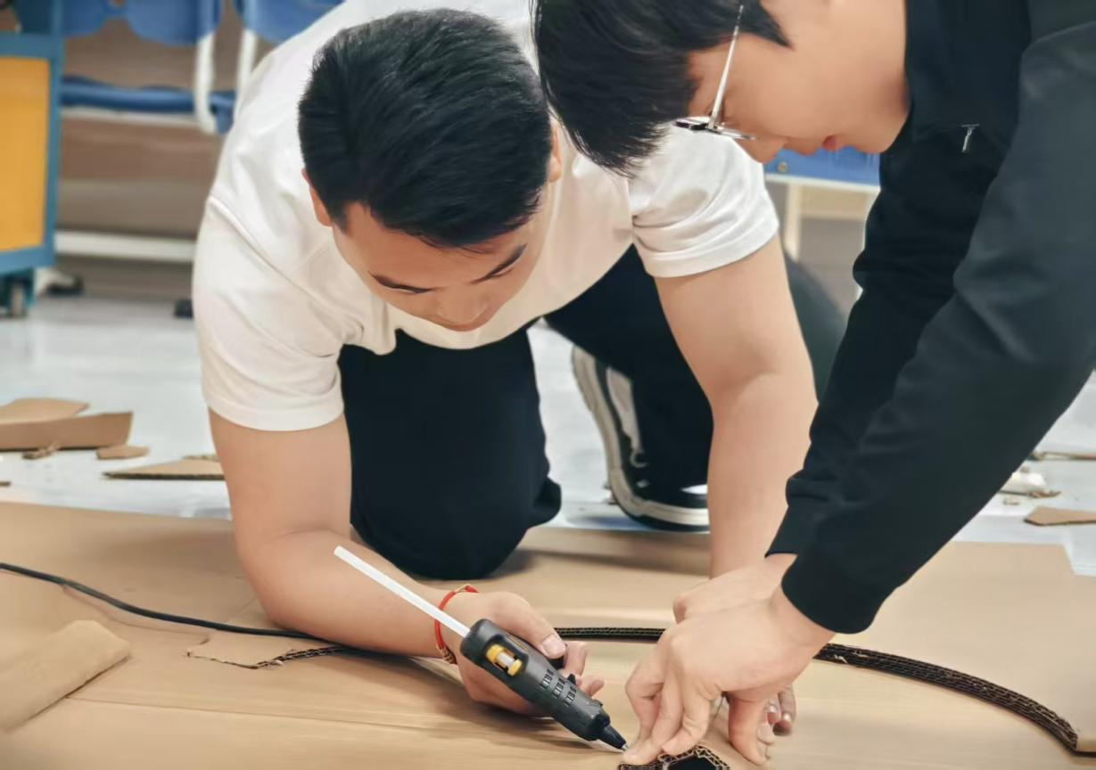 从最初的设计构思,到材料的挑选与加工,再到最终的组装成型,整个过程充满挑战。面对纸壳易破损、塑料管拼接难度大等问题,师生们群策群力,不断尝试新方法、新技巧。在辅导员的指导下,大家分工明确,有的负责剪裁纸壳,有的专注于车架拼接,有的则精心进行涂装工作,每个步骤都凝聚着大家的汗水与智慧。