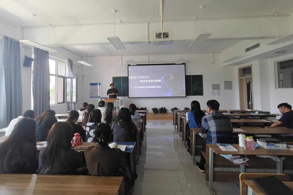 作为系列活动的开篇,思政教研室尹光政老师以《多模态与生成式AI赋能职业教育创新-打造智能时代优质课程教学体系》为题,系统分享了AIGC技术在教学全链条的创新实践。通过“AI备课助手快速生成思政案例库”“人工智能技术快速完成课堂签到、活跃课堂气氛”等十余个案例,现场演示了Deepseek、即梦、kimi、coze、ourteacher等工具如何突破传统教学资源开发效率瓶颈,实现"教师-AI-学生"三元协同的新型教学模式。AIGC技术的核心价值在于将教师从重复性劳动中解放,转而聚焦教学策略优化与高阶思维培养。