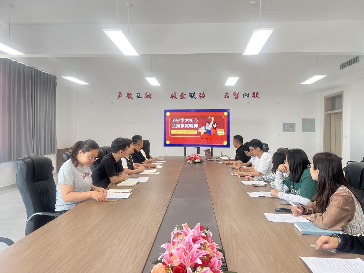 会议上,副院长谭策指出:“科研诚信是学术创新的生命线,关乎学校声誉与科研事业可持续发展。”他强调,本次活动旨在引导师生树立正确科研价值观,既要以榜样力量激发学术使命感,也要以警示案例筑牢思想防线。