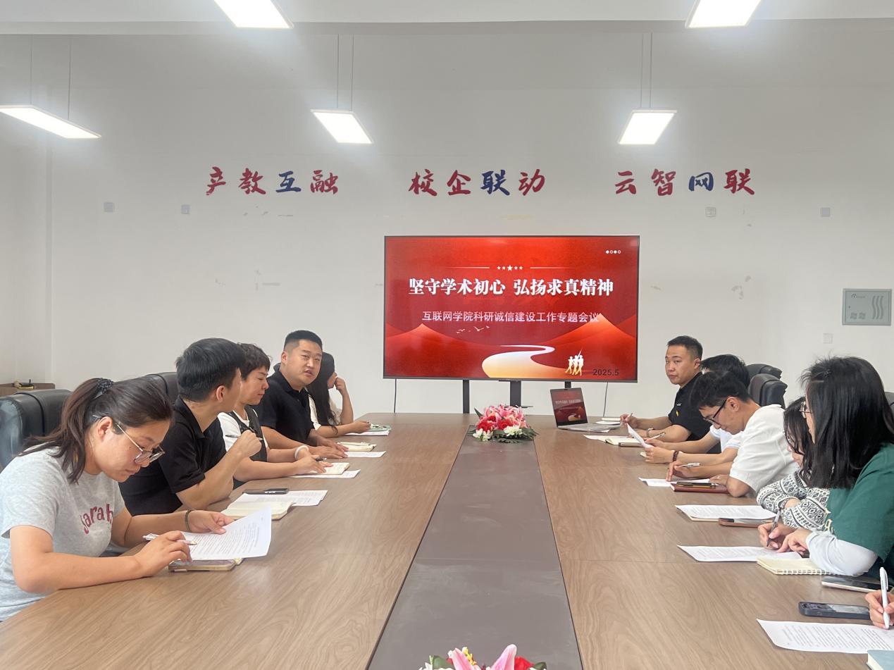 为深入贯彻落实国家关于科研诚信建设的决策部署,进一步强化师生学术道德意识,beat365在线唯一官网互联网学院于5月26日正式启动“科研诚信建设月”主题活动。互联网学院院长沈燕宁、副院长谭策、张瑞恒、全体教师及辅导员参加本次会议。活动以“坚守学术底线,涵养科研匠心”为主题,通过分类教育培训、正反案例结合、多元形式联动,面向全校师生开展系统性科研诚信主题教育,着力营造风清气正的学术生态。