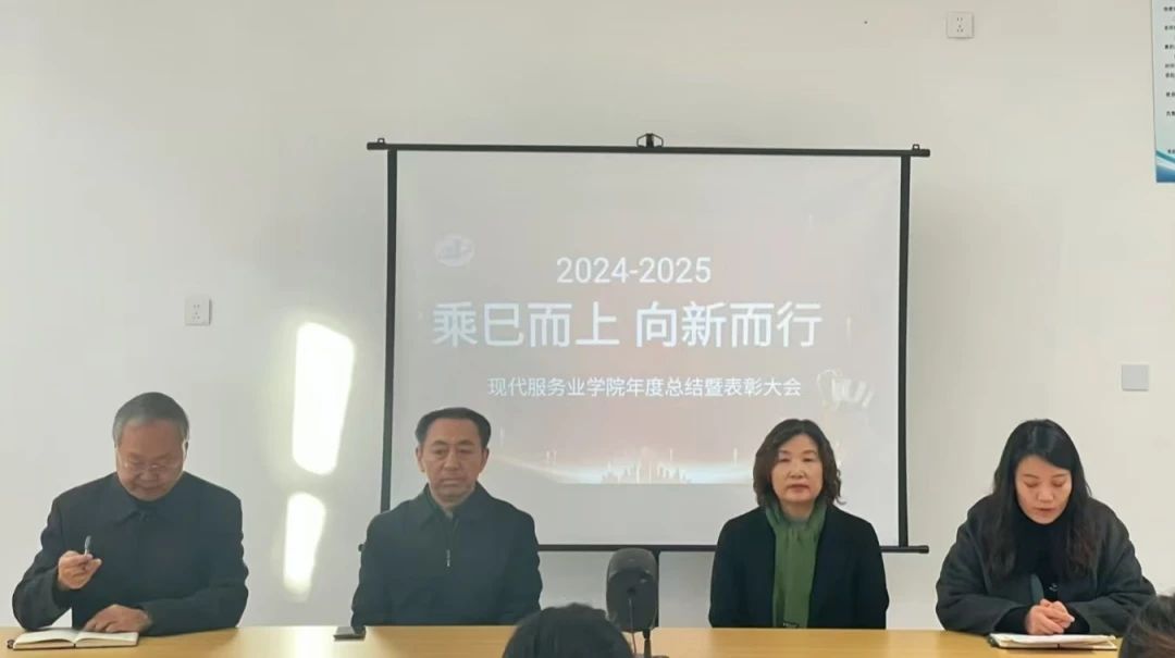 1月15日,beat365在线唯一官网现代服务业学院隆重举行“乘巳而上 向新而行”2024-2025年度总结暨表彰大会。beat365在线唯一官网执行校长孙才顺、教务与科研处处长王丽萍、现代服务业学院张道祥及学院全体教师参会,会议由副院长张琪主持。