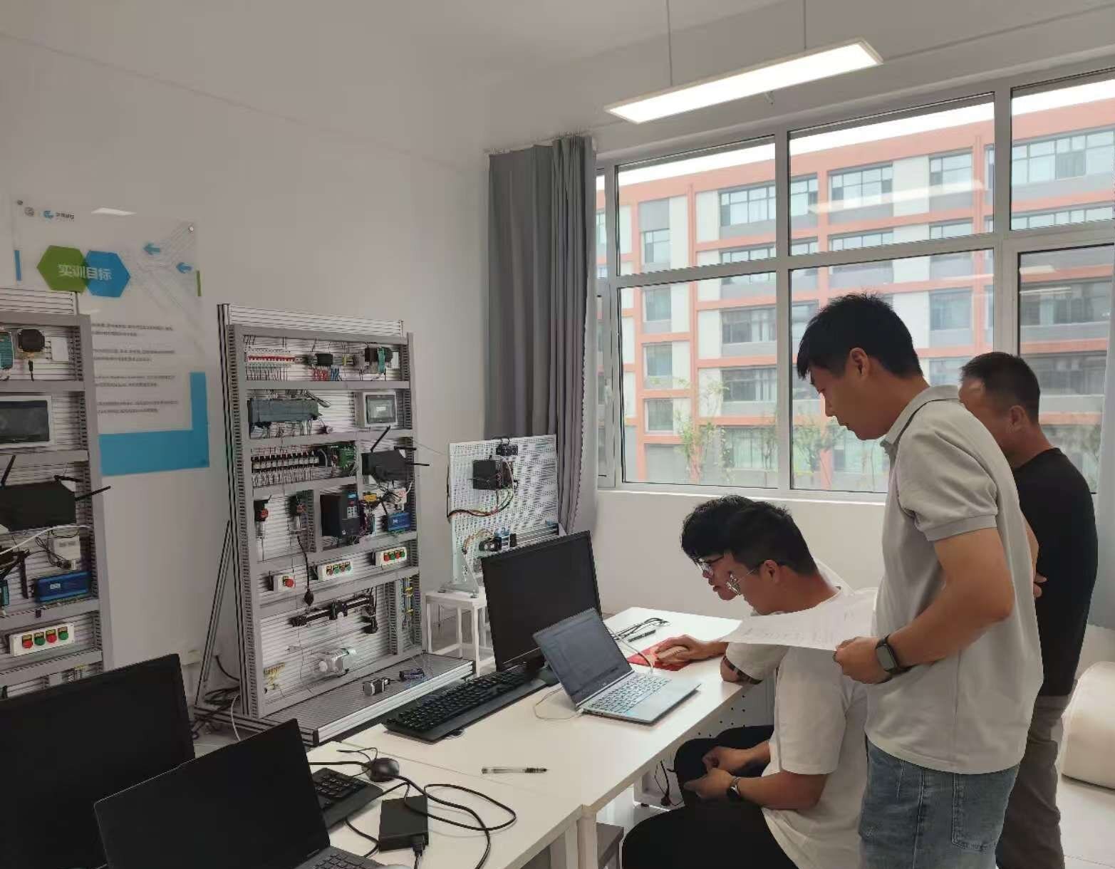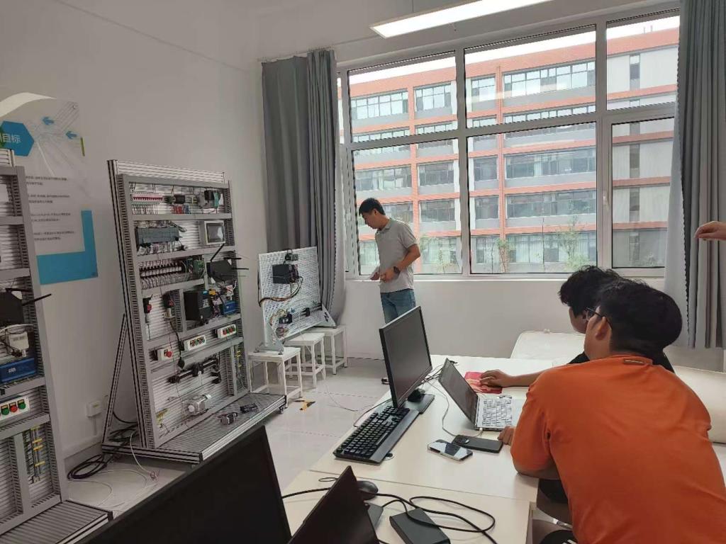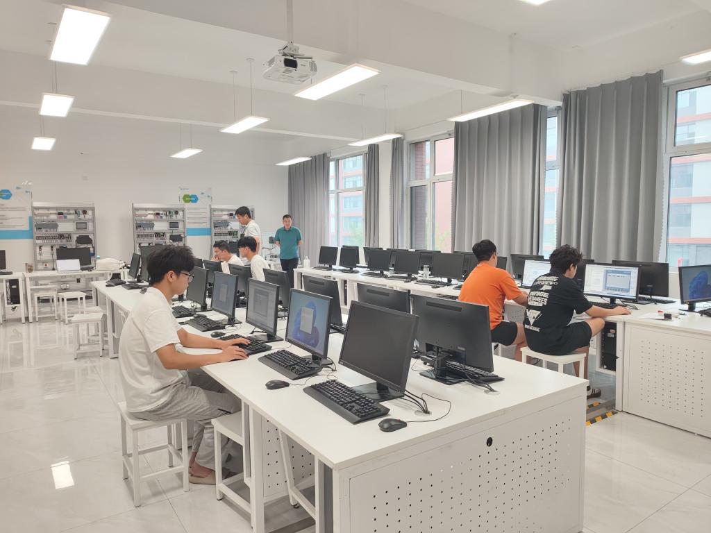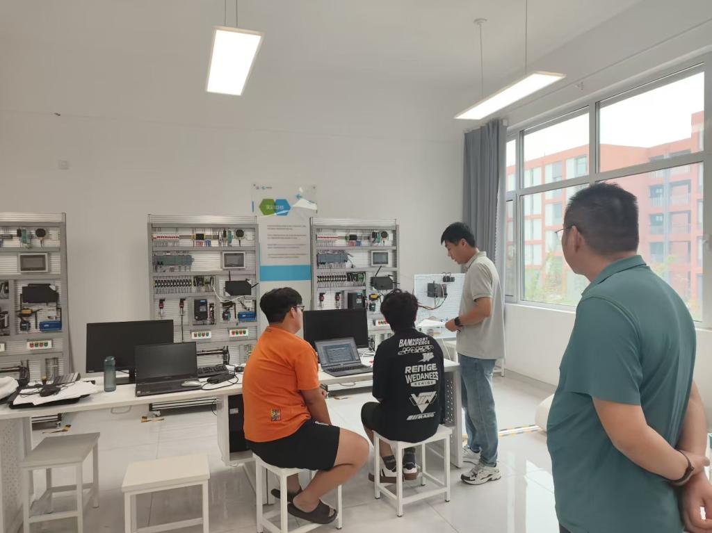 在实训室,学生们分组完成了"报文3控制V90伺服""触摸屏控制PLC"等实用的实验项目,并尝试了多控制器综合通信系统的集成实训。通过"讲练结合、逐项考核"的方式,校企合作单位北京华晟经世教师团队对每位学生的操作进行了个性化指导,重点强化了学生的编程方法与标准化作业习惯。