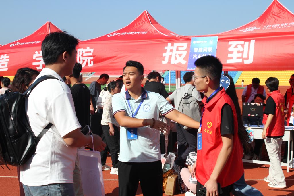 报到当天,老师和志愿者们身着统一服装,早早驻守在校园入口、报到处、宿舍区等关键点位,主动上前接过新生的行李,引导完成身份核验、材料提交等流程,耐心解答报到过程中出现的问题,用热情的态度、细致的服务让新生及家长感受到“家”的温暖。