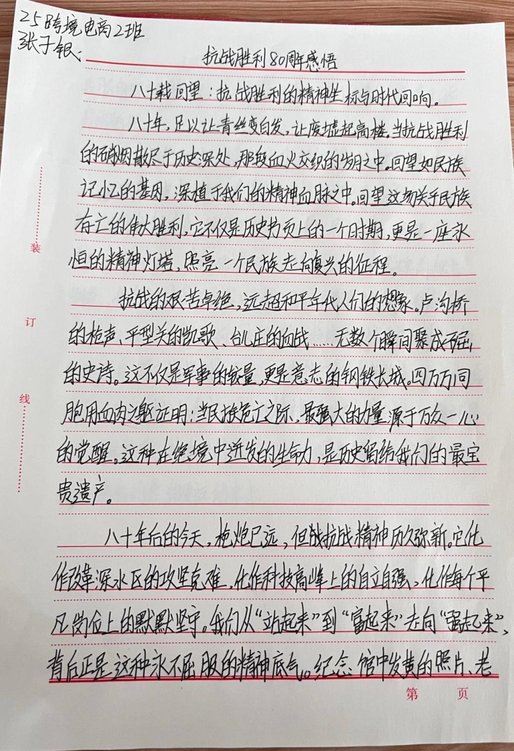 在聆听系列主题授课之余,广大学子深受触动,纷纷提笔,记录下自己的学习体会与思想感悟。一段段文字,是青年与历史的对话,是爱国情怀的自然流淌,更是对未来的思考与承诺。