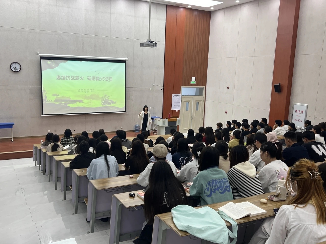 活动期间,马克思主义学院全体思政课教师充分发挥主渠道作用,将纪念抗日战争胜利80周年的主题深度融入各门思政课程教学之中。老师们围绕“9.3阅兵看今日繁华盛世”、“中流砥柱:中国共产党的抗战”、“百年风华 初心不改”等核心议题,为学生们呈现了一堂堂内容丰富、思想深刻、情感真挚的大思政课。