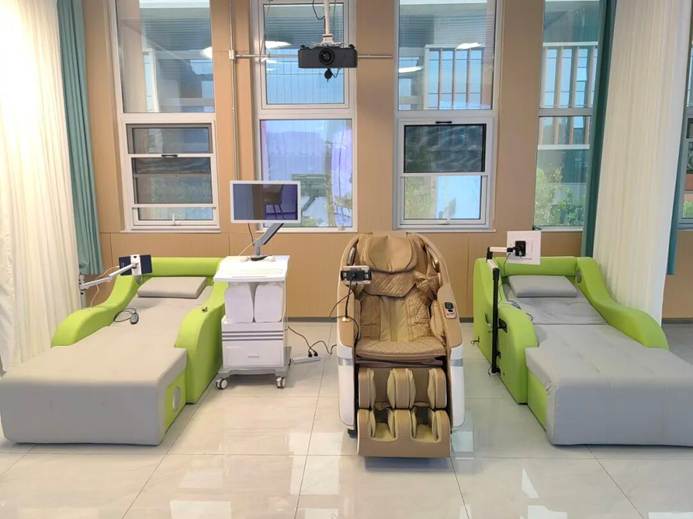 作为师生心理健康的“赋能空间”,心灵氧吧巧妙平衡温馨氛围与科技感,这里不仅配备心理评估服务仪、心理认知行为训练仪,更设有专属的“心灵之花”意念点亮装置,当体验者专注调节状态时,装置会随意念点亮,呼应“点亮心灵、绽放自我”的美好寓意。