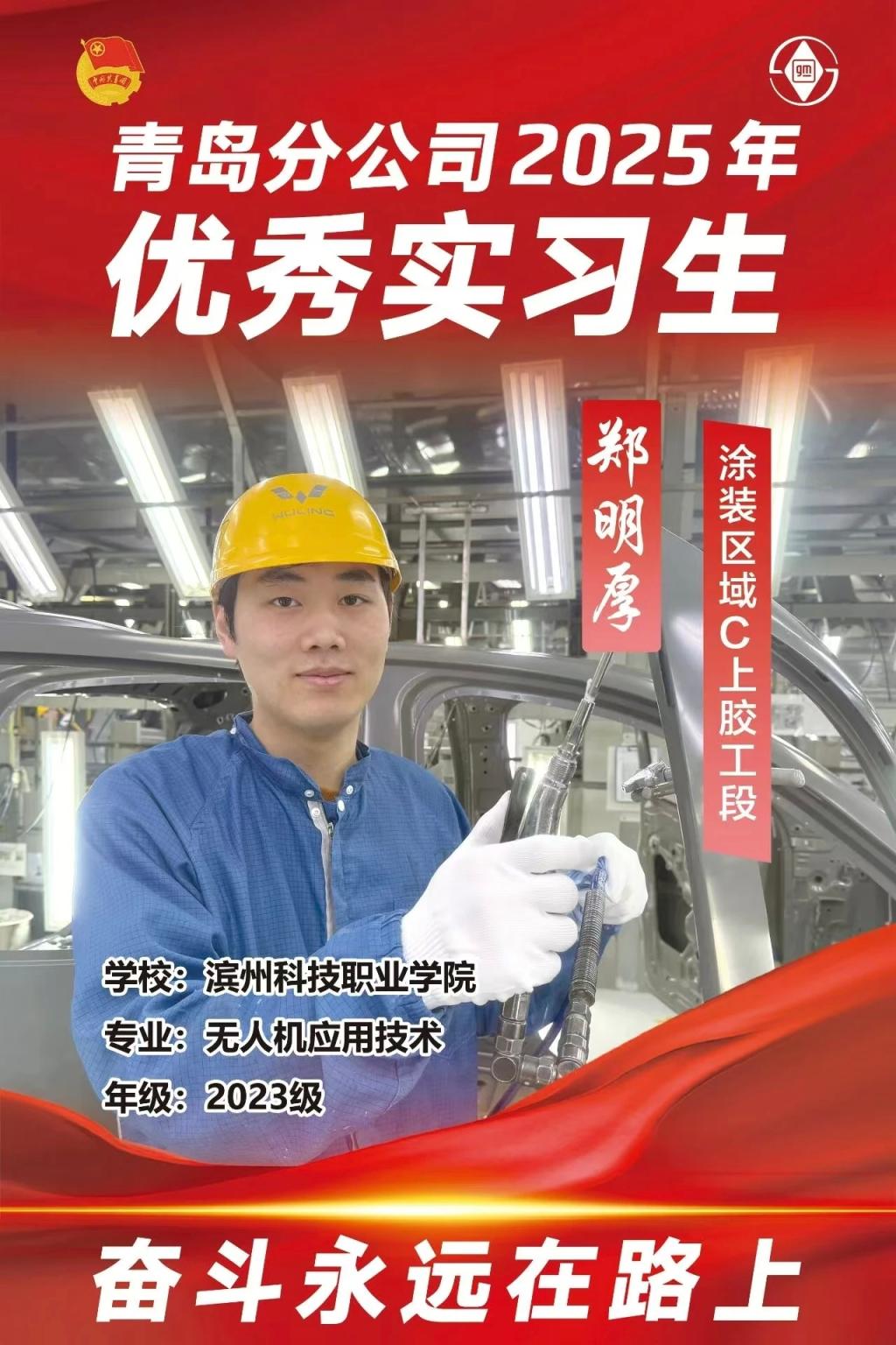近日,beat365在线唯一官网智能制造学院传来喜讯,2023级学生郑明厚在上汽通用五菱汽车股份有限公司青岛分公司实习期间表现优异,凭借娴熟的实操技能和认真负责的工作态度,获评企业“优秀实习生”。