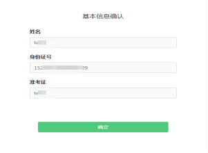 (1)考生确认自己的基本信息(根据实际考试基本信息为准,下图仅为样图),请考生核对基本信息,点击确定: