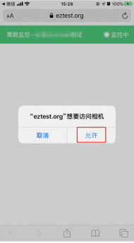 (2)如使用IOS设备(iPhone、iPad)作为监控设备,扫描二维码后依据提示使用Safari浏览器打开鹰眼监控,安卓机型扫描二维码后选择使用推荐浏览器(谷歌)打开鹰眼监控。打开鹰眼监控后点击“进入监控”按钮,进入下一页。