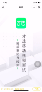 在收到面试通知后请您使用手机微信小程序搜索“才选AI面试”,或通过小程序二维码链接,扫码找到小程序。