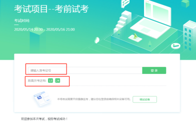考前30分钟,在登录界面输入考生号登录考试。开考30分钟后未能登录的考生,视为缺考,考生将无法登录系统参加考试。登录中若有问题,可联系页面中的“技术支持”协助解决。