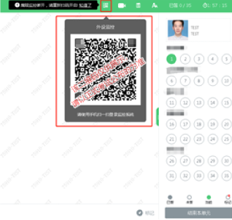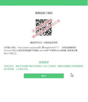 (1)进入考试后,考试设备上会显示鹰眼监控二维码,使用智能手机或平板设备扫描二维码(如下图所示)。