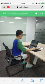 鹰眼监控设备架设好以后,可以使用前置摄像头的拍照功能,查看监控效果、调试监控角度,确保监控摄像头无遮挡、设备架设稳定,监控范围应覆盖考生上半身(双手可见)、考试设备、答题设备的屏幕、书桌以及考生周边环境。