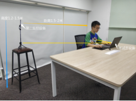鹰眼监控设备建议架设在考生的侧后方、距离1.5米-2米处、摄像头高度1.2-1.5米,与考试位置成45度角(如下图所示)。