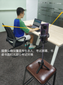 (1)考试设备监控(即第一视角监控)要求摄像头保持正面面对考生,考生的完整的头部、肩部处在监控范围内,并露出双耳。