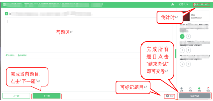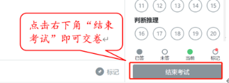 答题结束后,考生可以后点击界面右下角的“结束考试”按钮交卷。(如下图所示)