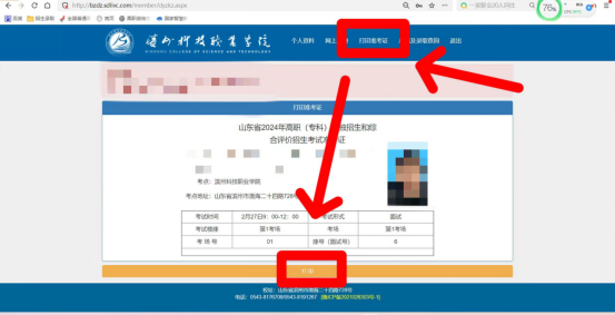 2.登录可查看个人相关信息,在菜单栏点击打印准考证——确认信息无误后点击打印。