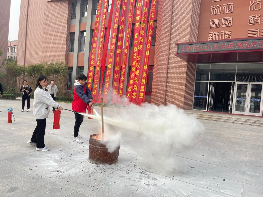 活动最后,石教官向全体师生讲解了灭火器的使用方法及火灾逃生技巧,并在现场进行演练,学生代表进行实践练习。