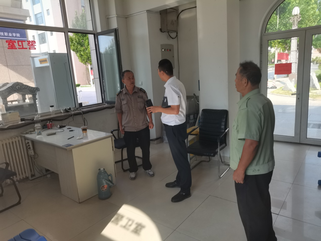检查组一行先后对学校校舍和设施设备进行了拉网式排查,重点对教学楼、实训楼、学生宿舍、食堂、监控室等重点要害部位进行实地走访查看。每到一处,检查组均向部门管理人员和岗位工作人员详细询问工作开展情况、安全管理情况,查看设施设备使用情况和相关工作记录。针对发现的安全隐患问题进行了现场指导,对存在的薄弱环节提出了整改要求,并责令相关部门立即整改。