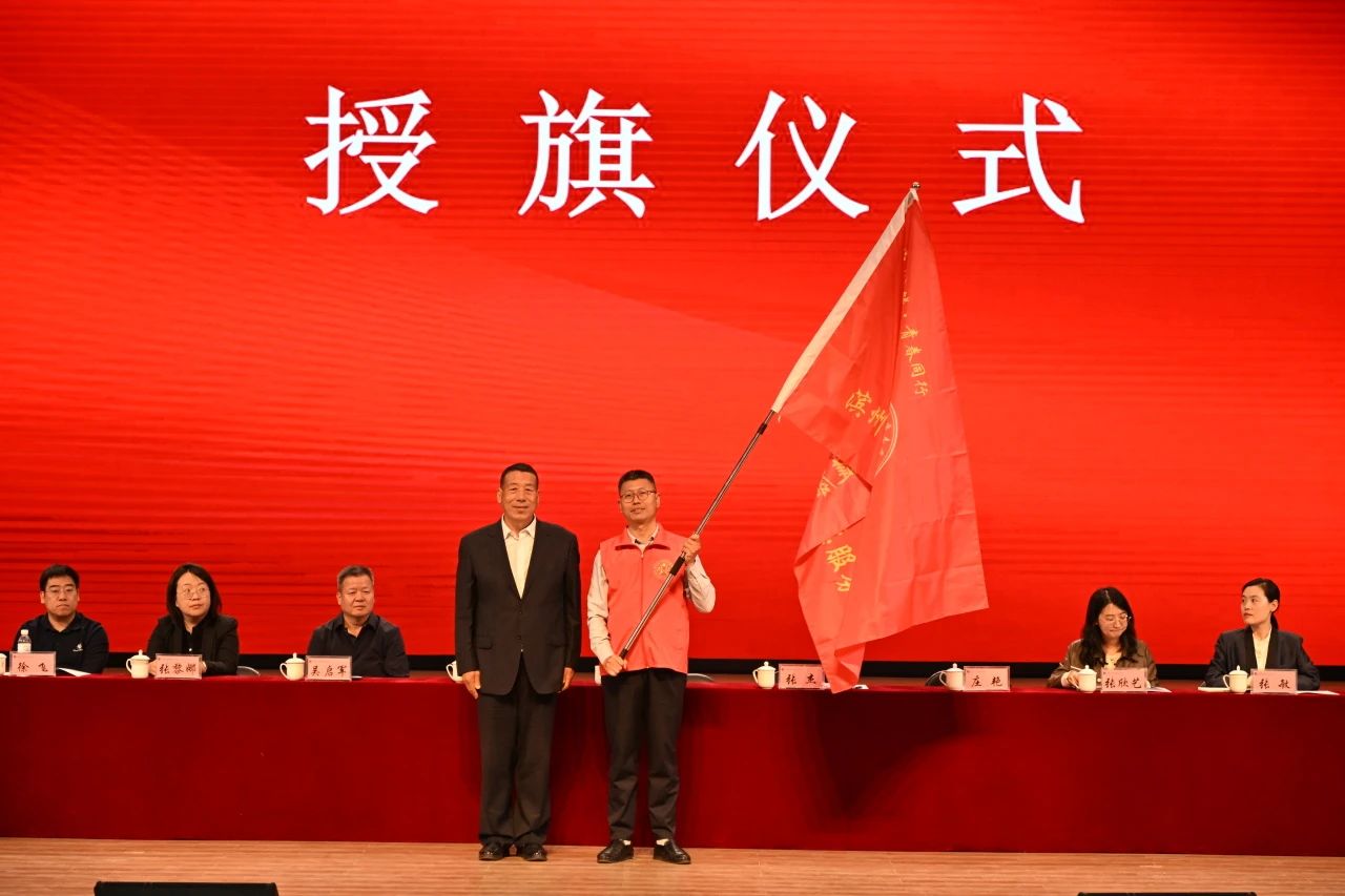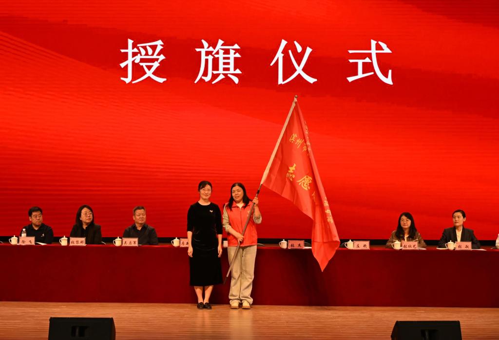 房新天为滨州市“心安疾控”志愿服务队授旗。