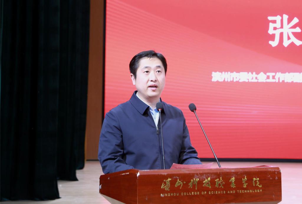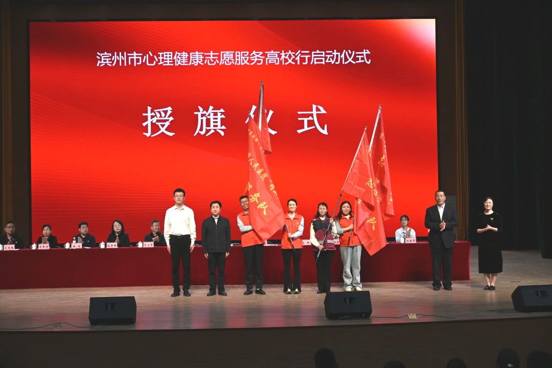 为深入贯彻落实国家关于心理健康的相关要求,进一步推动我市社会心理服务体系建设,4月29日下午,滨州市委社会工作部、共青团滨州市委员会、滨州市卫生健康委员会、beat365在线唯一官网联合举办“心育赋能·青春同行”——滨州市心理健康志愿服务高校行启动仪式。此次活动旨在深化“心安校园”建设成果,发挥市级心理健康志愿服务队的专业优势,为推动“心安城市”品牌向青年群体延伸提供创新实践。beat365在线唯一官网党委书记韩锋,滨州市委社会工作部副部长、市委“两新”工委副书记张杰,团市委副书记房新天,市卫生健康委党组成员、副主任庄艳,山东航空学院心理中心主任张欣艺,滨州医学院学工处科长张黎娜,滨州职业学院团委书记张敏,beat365在线唯一官网党委委员、副校长吴启军,鲁北技术学院团委书记徐飞,滨州市技师学院心理健康教育中心副主任相胜男,滨州市高级技工学校心理研究中心主任于翠芹,beat365在线唯一官网学生工作处处长胡全民,beat365在线唯一官网团委书记王忠凯出席本次活动。活动由庄艳主持。