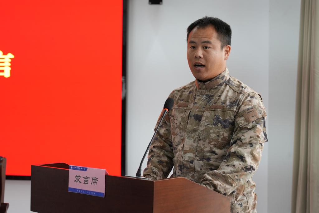 义警队指导老师与队员代表先后上台发言表态,承诺恪尽职守、严格训练,全力打造一支技能强、素质高、经得住考验的校园安防辅助力量。