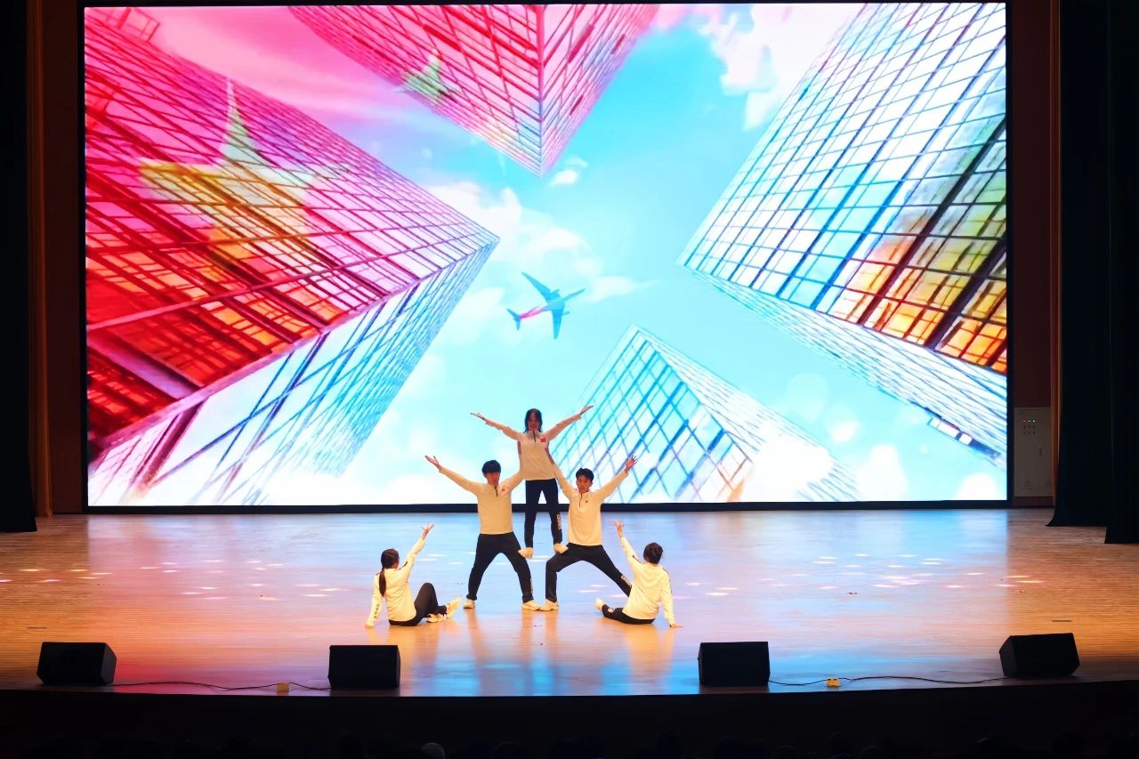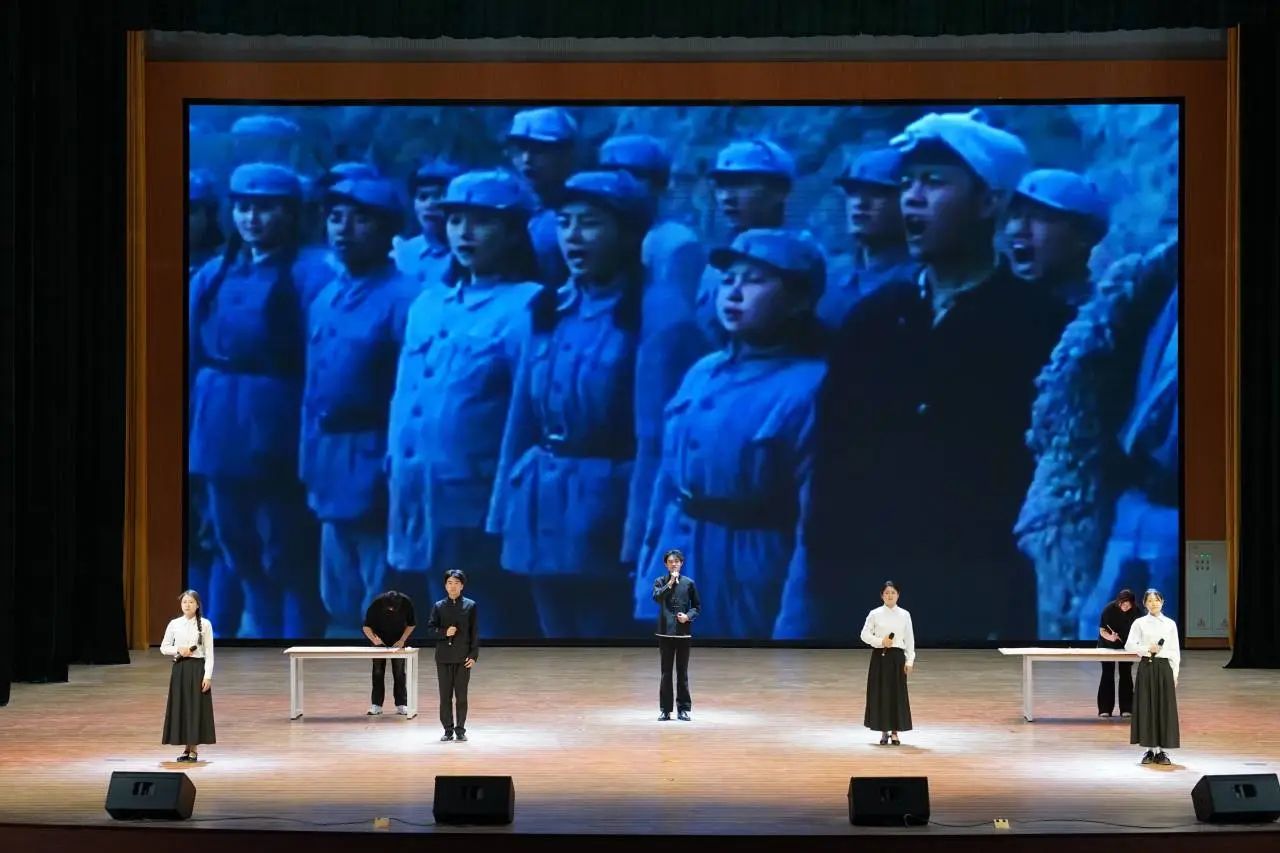 合唱团身着清新服装,用纯净嗓音深情演绎《送你一朵小红花》,传递温暖。随后激昂唱响《保卫黄河》,冲击观众心灵,现场反响热烈。此次演出借两首歌在科技文化交融中传承红色基因,为校园文化注入活力。