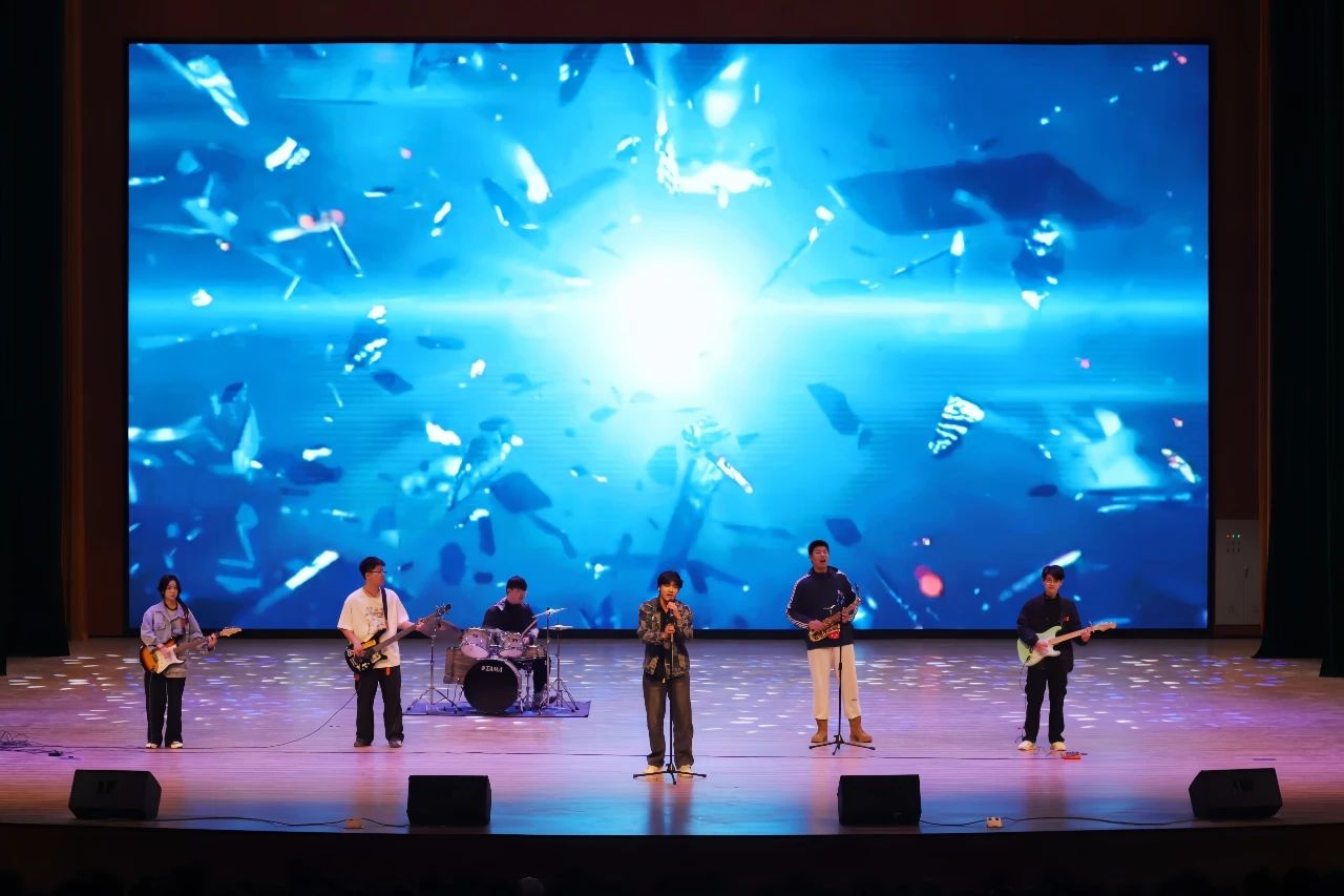 乐队以其独特的音乐风格和极具感染力的现场表演迅速点燃了观众的热情,从充满青春朝气的校园民谣到激情澎湃的摇滚曲目,乐队用一首原唱歌曲讲述着属于大学的梦想与追求,迷茫与成长。通过这一艺术形式为同学们提供了一个释放青春活力展示个性风采的舞台。