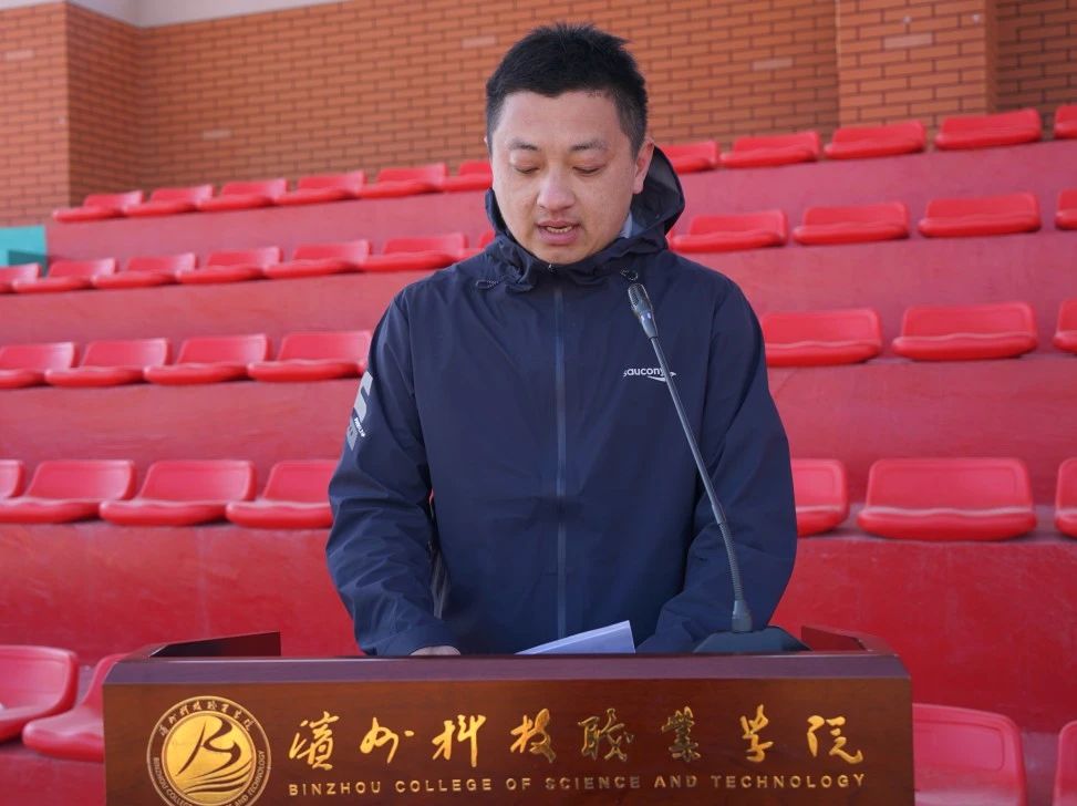 学生代表23级旅游管理专业张博皓同学宣读了“阳光校园跑”倡议书,号召大家积极投入 “阳光校园跑”,真正“走下网络、走出宿舍、走向操场”,让“健康第一,运动快乐”的理念真正深入大家心中。