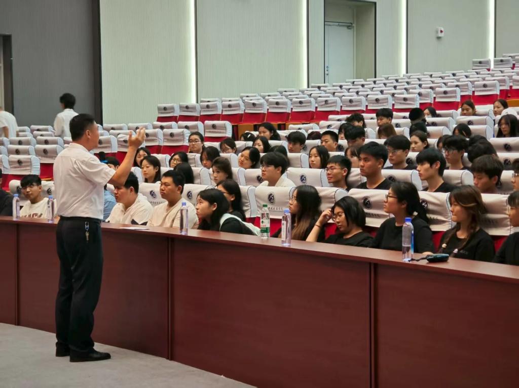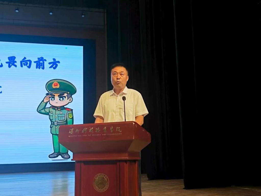 国防教育学院院长桑海滨发表致辞,从学院定位,核心优势、人才培养理念等方面展开介绍,强调“以军事化管理”的教育理念,并寄语同学们“选择适合自己的赛道,在国防教育学院绽放青春光彩”。