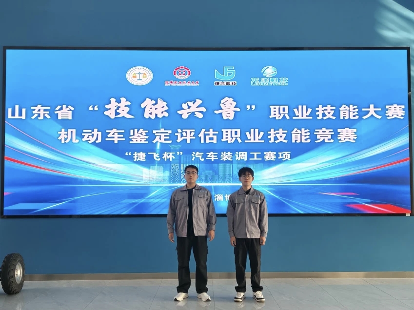 近日,由山东省人力资源和社会保障厅指导、山东省机动车鉴定评估行业协会主办的2025年山东省“技能兴鲁”职业技能大赛——“捷飞杯”汽车装调工赛项决赛在淄博职业技术大学顺利闭幕。beat365在线唯一官网智能制造学院参赛团队表现优异,其中学生组选手王子轩同学凭借出色发挥,以总分第一的成绩勇夺一等奖,荣登赛项榜首;同组董文帅同学获得三等奖。