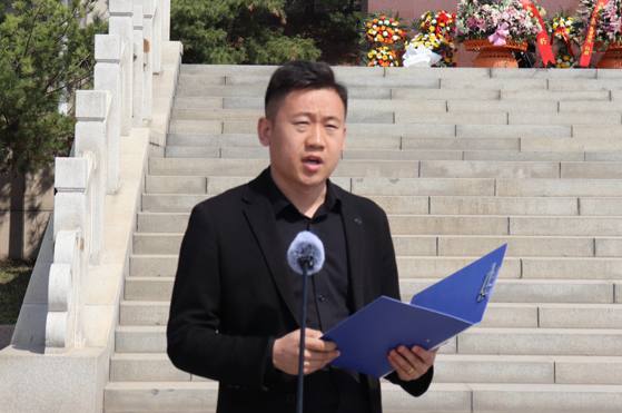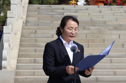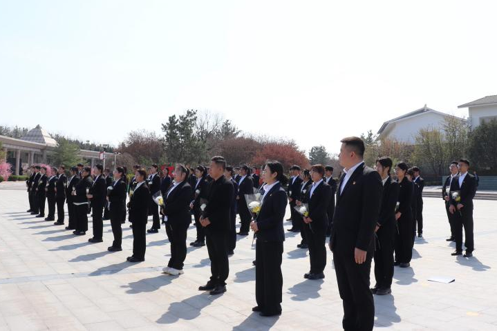 发言结束后,全体师生代表在工作人员的引导下,怀着沉重的心情,有序走到纪念碑前,献上饱含敬意的鲜花,向革命烈士鞠躬,表达对先烈们的深切缅怀和崇高敬意。