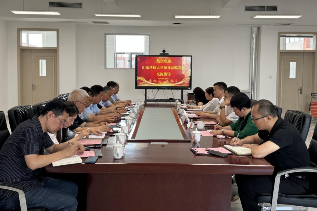 刘曙明代表学校对山东科技大学研究生院院长韩作振教授一行的到来表示热烈欢迎,详细介绍了学校近年来的发展情况、师资队伍建设现状以及在教师学历提升方面的需求。刘曙明表示,提升教师学历层次和专业水平是学校实现高质量发展的重要保障,希望通过与山东科技大学在教师在职研究生项目上的合作,为学校教师搭建优质的学习深造平台,助力教师成长,进而推动学校教学质量和科研水平的全面提升。