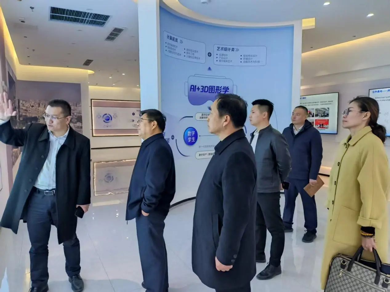考察期间,先后走访基地展厅、产业实训中心、产业交付中心、学生宿舍及餐厅等核心功能区域,系统了解基地从“知识层—实训层—实战层—呈现层”的人才培养路径。