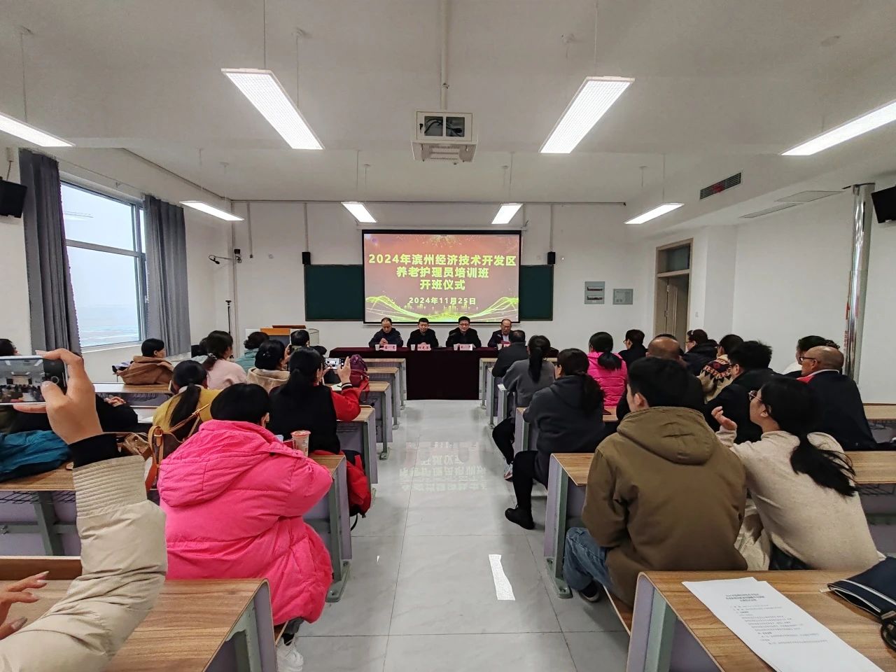 11月25日,滨州经济技术开发区社会事务局养老护理员职业技能提升培训班在beat365在线唯一官网成功举办。滨州经济技术开发区社会事务局局长胡光滨,滨州经济技术开发区社会事务局民政办主任孟嵩,beat365在线唯一官网党委委员、开放教育学院院长王军,开放教育学院副院长朱兆光出席开班仪式。