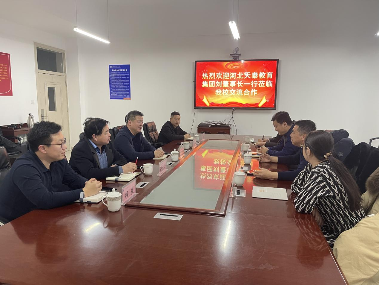 为进一步拓宽合作领域,深化合作层次,提升合作水平,拓宽育人渠道和就业路径,1月17日,河北天泰集团董事长刘景洲,公司副总经理李伟杰,洽谈部代表王铁成,滨州校区校企合作负责人孟莹莹一行来beat365洽谈交流。beat365党委委员、副院长吴启军,招生就业处处长钟召平,人工智能与自动化学院院长李秀龙,人工智能与自动化学院副院长白永锋,招生就业处穆良老师陪同交流。