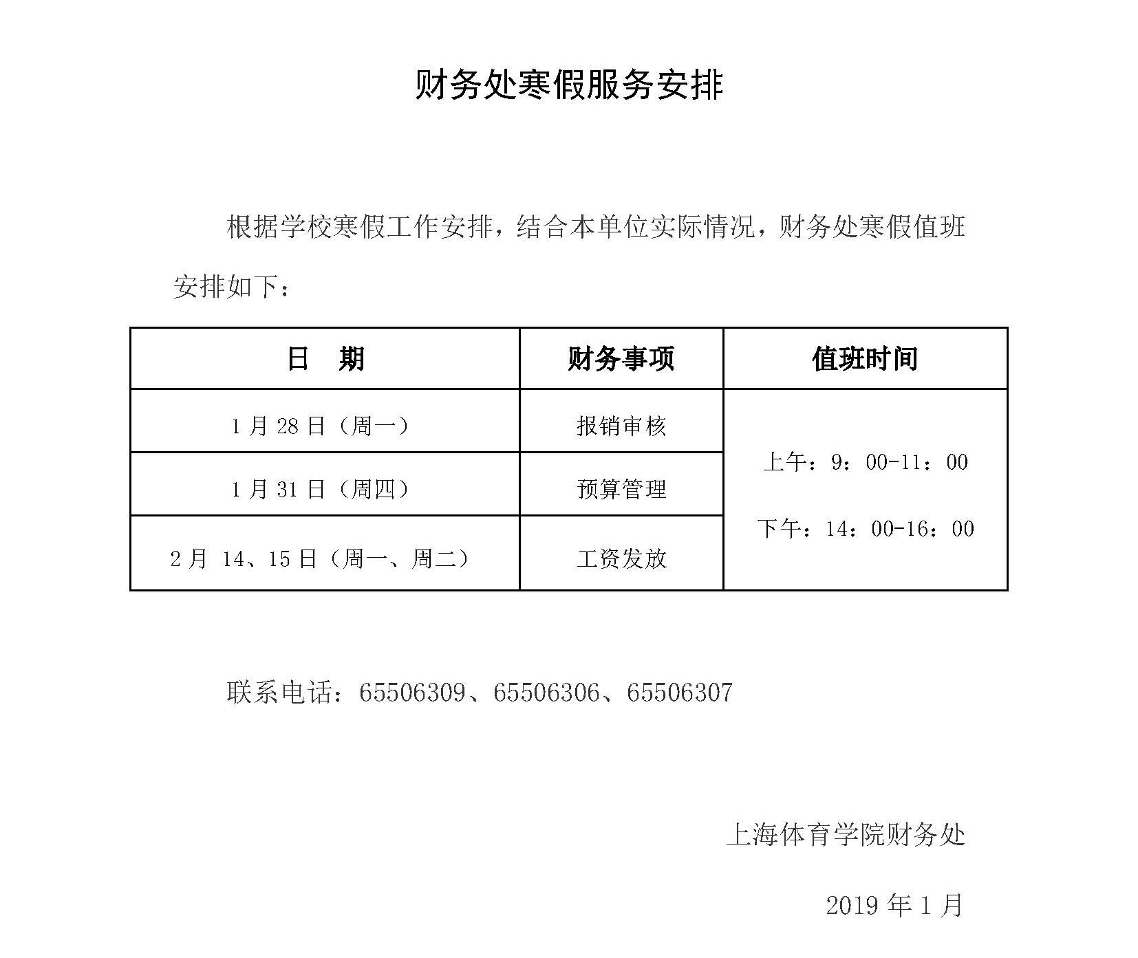 根据学院办公室《关于2018--2019学年第一学期期末及寒假工作安排的通知》和训练安排,假期体育场馆开放时间将有所调整,具体安排如下: