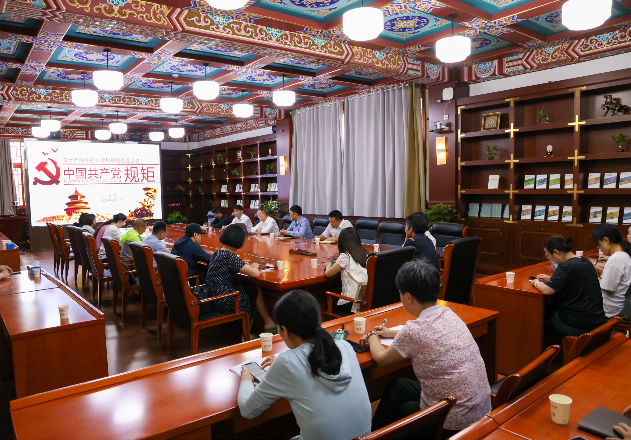 本网讯 为深化广大党员对党纪的认知与学习,进一步推动纪律规矩内化为党员的政治自觉、思想自觉和行动自觉。6月12日下午,jnh今年会网站党委副书记潘勤在绿瓦大楼第四会议室为机关党委第二党支部、武术学院教工第一党支部、教工第二党支部作“严明党的纪律和规矩”专题党课。武术学院党委书记刘明生主持党课学习。