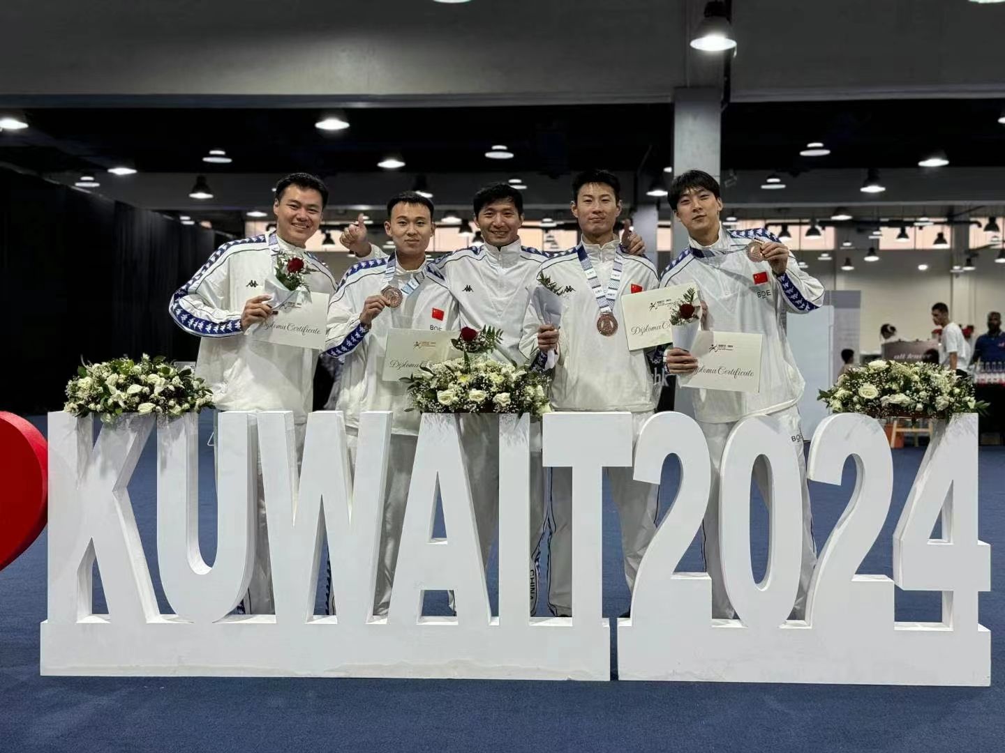 本网讯 在6月27日结束的2024年亚洲击剑锦标赛男子重剑团体项目中,我校奥运选手王子杰与队友合作收获一枚宝贵的铜牌。