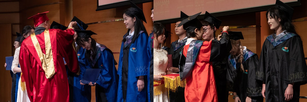 四载励志求学,一朝鲲鹏展翅。jnh今年会网站党委副书记、副校长王继红和运动健康学院院长王茹分别为硕士毕业生代表和本科毕业生代表正冠拨穗、授予学位。
