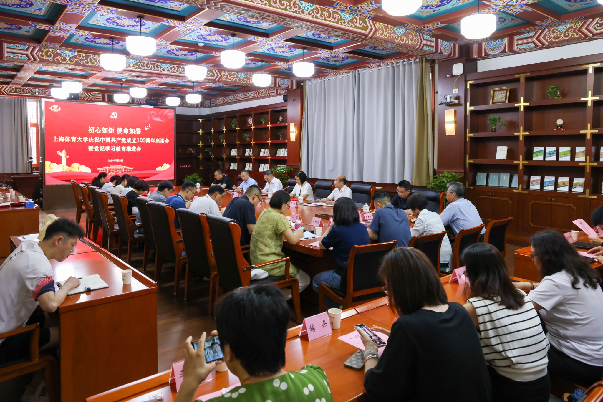 本网讯 7月1日下午,学校召开庆祝中国共产党成立103周年座谈会暨党纪学习教育推进会。校领导班子、党的建设工作领导小组成员,二级党组织书记,党支部书记和党员代表出席会议。会议由党委副书记、校长毛丽娟主持。