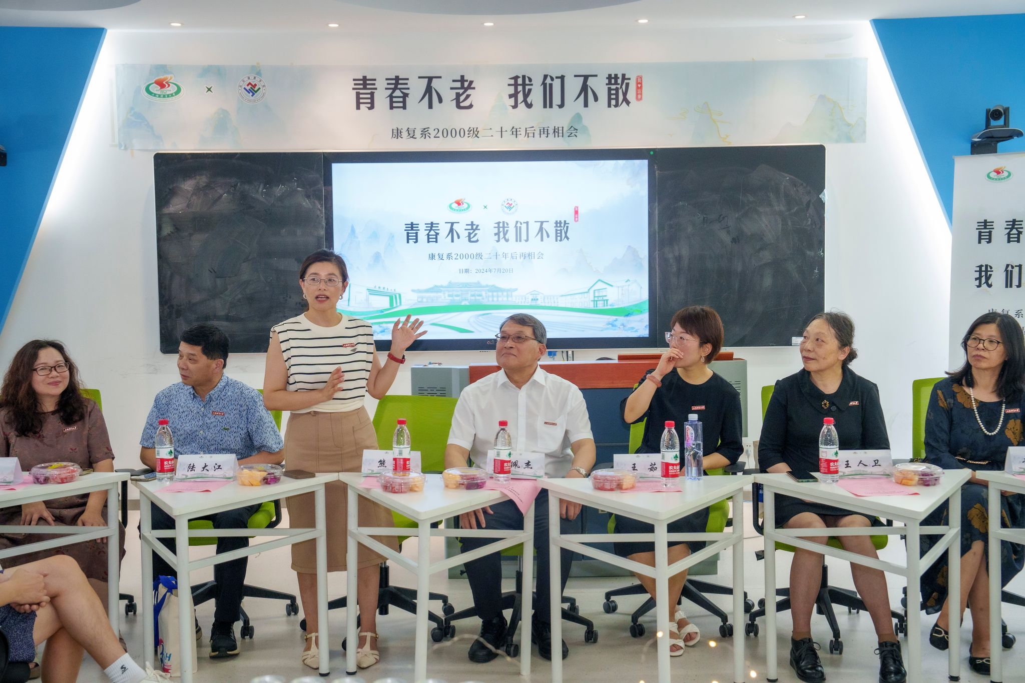 本网讯 7月20日,烈日炎炎,青春似火,jnh今年会网站运动健康学院迎来了原康复系2000级本科近四十位校友返校,与学院领导和老师们相聚一堂,共同庆祝毕业二十周年的重大时刻。本次相聚活动主题是“青春不老,我们不散,二十年后再相会”,旨在回顾青春,共叙情谊,加强校友与学校间的联系,展望未来发展。学院党政领导班子、时任教师代表陈佩杰、陈文鹤、王人卫、陆大江、赵晓晗、殷勤、庄洁、鲍明华、魏勇、杨德洪应邀出席活动。