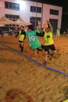 在沙滩手球比赛的激烈对决中,女队的核心人物魏显霁,作为场上的主要进攻得分点,在赛场上大放异彩,她的每一次空中转体360°射门,不仅精准地穿透对方防线,更点燃了场边的热情之火,引来阵阵欢呼与喝彩。她的精彩表现,不仅极大地鼓舞了场上队友的士气,更点燃了场下观众的热情,将整个赛场的气氛推向了高潮。