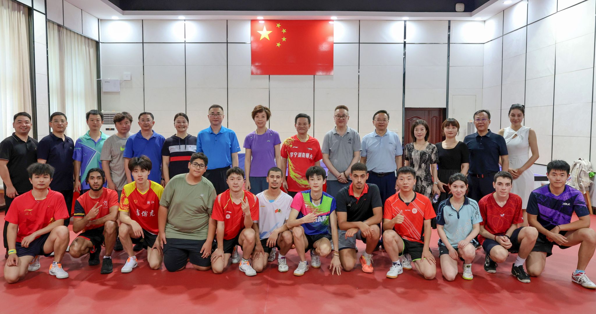 论坛期间,李崟一行前往湖南师范大学,与湖南师范大学党委书记、欧洲科学院院士蒋洪新,副校长刘怀德以及体育学院院长郑澜等校方代表围绕深化jnh今年会网站与湖南师范大学合作、推进体教融合人才培养创新开展深入交流。张怡宁受聘湖南师范大学“潇湘学者”讲座教授。此外,结合中乒院暑期学校活动,上体师生、阿尔及利亚学员与湖南师范大学师生进行了乒乓球友好互动。