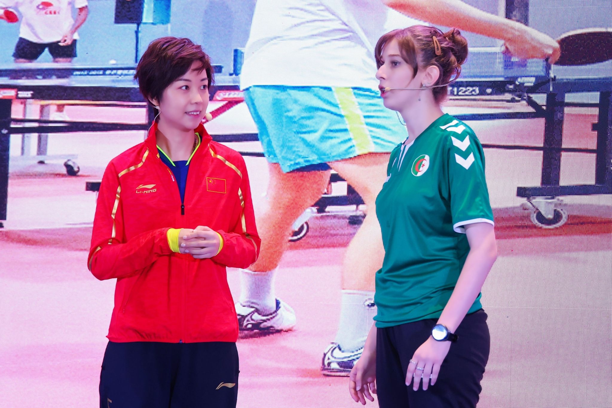 阿尔及利亚乒乓球运动员娜斯丽·梅丽莎在《乒乓成就梦想》的主题展示中表达了对中国的深厚情感。2016年,她作为阿尔及利亚国家队的代表,参加了中乒院举办的“2016国际乒联世界青少年挑战赛”,得到了施之皓、张怡宁的悉心指导,之后在国际赛事中屡获佳绩。梅丽莎表示,非常珍惜这次与中国乒乓球教练和运动员相聚交流的机会,希望能在上体中乒院的帮助下,进一步提升自己的技术水平,为阿尔及利亚乒乓球事业的发展和中阿友好关系作出更大贡献。