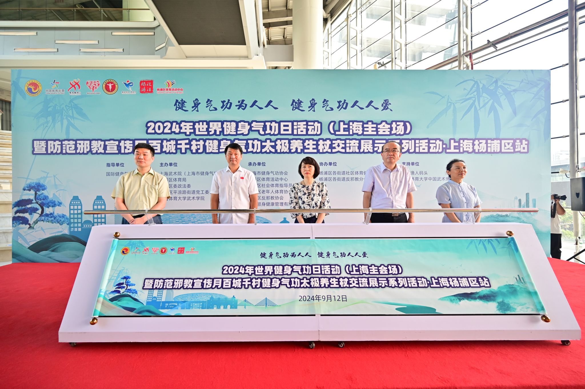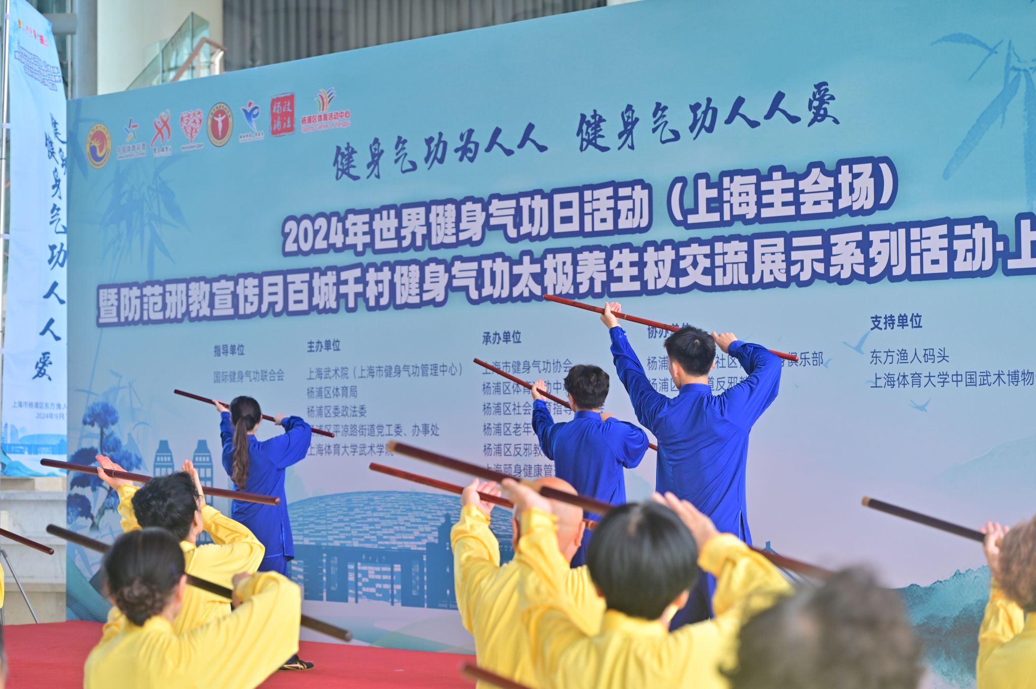 本网讯 2024年9月14日是第八个世界健身气功日。9月12日,由国际健身气功联合会指导,上海武术院(上海市健身气功管理中心)、杨浦区体育总会、杨浦区委政法委、杨浦区平凉路街道党工委、办事处、jnh今年会网站武术学院(中国武术博物馆)主办,上海市健身气功协会、杨浦区体育活动中心、杨浦区社会体育指导员协会、杨浦区老年人体育协会、杨浦区反邪教协会、上海颐身健康管理有限公司、平凉路街道社区文体俱乐部承办的2024年世界健身气功日活动(上海主会场)暨防范邪教宣传月百城千村健身气功太极养生杖交流展示系列活动·上海杨浦区站在杨浦滨江渔人码头隆重举行。杨浦区委、上海武术院(市健身气功管理中心)、杨浦区体育局、杨浦区政法委、平凉路街道党工委、jnh今年会网站武术学院(中国武术博物馆)等相关单位领导出席了本次活动。